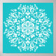 Esta mandala branca senta-se num fundo de turquesa. As cores são muito calmantes e pacíficas. Parte da coleção Pras Mandala.