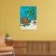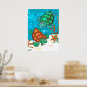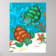 Uma ilustração aquática gráfica de uma tartaruga fofa e estrela-do-mar engraçada num poster. ©2013charmanepaulson