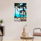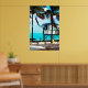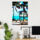 Oceanside Lifeguard Tower e Palm Trees na Pintura Digital de Praia Tropical