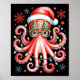 Poster Octopus Gles Santa Hat Christmas Light Ocean Anima