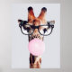Esta girafa adora vestir óculos e soprar chiclete rosa.