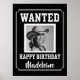 PROCURADO: O Notório Bandido de Aniversário! Este cartaz de Procurado ao estilo Velho Oeste é o complemento perfeito e engraçado para qualquer festa de aniversário com tema cowboy ou country. Com um modelo de foto personalizável, fundo de pergaminho envelhecido, tipografia ousada ao estilo Western e texto divertido com tema de fora-da-lei, este design permite que você mostre o "criminoso" de uma maneira hilária. Seja qual for o "crime" - roubar bolo, farrear como um fora-da-lei ou fugir das responsabilidades -, este cartaz inspirado no estilo vintage prepara o cenário para um momento divertidíssimo. Perfeito para decoração Western, sinalização de festa ou até mesmo como um souvenir, este cartaz de Procurado está morto ou vivo - de preferência vivo para comer bolo!