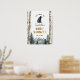 Bem-vindos convidados em estilo com este poster de chá de fraldas com tema de aventura. Apresentando um urso preto, pássaros, pinheiros aquíferos e montanhas negras, este design coordena-se perfeitamente com o convite correspondente e a decoração partidária. Personalize com o nome e a data do evento da honraria para um belo sotaque florestal que faz sua celebração se sentir extraordinária.