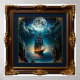 Add a touch of luxury to your home decor with Artistic image of an old ship sailing under a full moon, with warm lighting that highlights the ship's details. The image is framed in an elegant, ornate frame, adding a touch of sophistication and beauty.