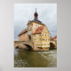 Poster da Altes Rathaus ou da antiga Câmara Municipal de Bamberg, construída no meio do rio Regnitz, no Alto Franconia, Baviera, Alemanha, com fachada coberta de frescos coloridos.