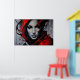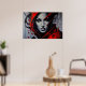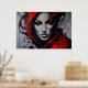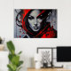 Uma impressionante obra de arte! Este retrato feminino combina realismo facial com respingos de tinta vermelha e preta explosivos. Olhos penetrantes e traços ousados criam uma atmosfera misteriosa e elegante. Perfeito para decoração de alto nível, estúdios e amantes de arte urbana e contemporânea.