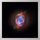 Esta imagem mostra uma nebulosa planetária conhecida como NGC 6543, ou o olho do gato. Nessa imagem, raios X de Chandra (roxo) são causados por ondas de choque à medida que ventos da estrela moribunda colidem com sua atmosfera ejetada. Os raios X foram combinados nesta imagem com dados ópticos do Hubble (vermelho, verde e azul). | Smithsonian e Smithsonian são marcas registradas detidas pela Smithsonian Institution.