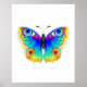 Arco-íris, realista, desenhado artisticamente, borboleta pavão de cores brilhantes com asas detalhadas texturizadas sobre fundo branco. Borboleta-arco-íris.