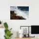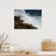 Ondas do oceano contra a fotografia da paisagem rochosa, poster.