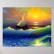 Poster Ondas oceânicas, veleiro e reflexo solar