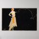 Uma ilustração de Russell Patterson, da década de 1920, retrata a flapper de pé com uma mão no quadril e um cigarro no outro. Uma corrente de fumaça ondulante e ondulante do cigarro cria uma linha decorativa.
