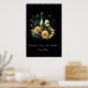 Essa sofisticada poster apresenta uma composição encantadora sobre fundo preto profundo. No seu centro, encontra-se uma elegante garrafa de vinho com um gradiente de turquesa-ouro, que se cinja, acompanhada de um vidro de cristal repleto de vinho de ouro. O arranjo é adornado com rosas luxuosas em preto e ouro contrastantes, cercados por delicadas folhas de ouro e elementos decorativos de filigrana. Estrelas ouros e sotaques espumantes criam um ambiente mágico e celeste por todo o design. As salpicos artísticas de chalé e ouro acrescentam movimento dinâmico à base da composição. A elegante escrita na parte inferior lê "Elegância em Cada Sip. Beleza em Todo Sangue, capturando perfeitamente o casamento poster da bela apreciação do vinho e beleza floral. A estética geral combina luxo, romance e elementos cósmicos em uma incrível celebração visual.