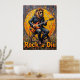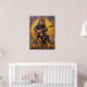 Esta pintura cativante apresenta um leão, cheio de óculos escuros e uma jaqueta de couro, profundamente imerso num "show céu aberto" em um violão elétrico. É balanceado numa roda de madeira numa paisagem de sol e pastagem. A vibrante e texturizada escova cria uma atmosfera viva e entusiasmante, transmitindo perfeitamente a vibração "Rock or Die" deste concerto único ao ar livre.