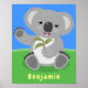 Este coala marsupial bonitinho está gostando de um lanche e acenando olá. Desenhado no estilo de ilustração de desenho animado.