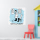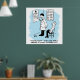 Optician fazendo um teste ocular confirma que o gráfico de parede realmente diz "impresso na China". Paciente lendo um quadro ocular na parede. Cartoon optometrista engraçado. Presente para um o-crítico. O poster da sala de espera de Optician.