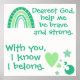 Monograma para que você insira sua própria oração, se você assim o desejar, poster quadrado. Este tema fofo com um arco-íris e galáxia verdes, e texto verde sobre um fundo branco, afirma, Caro Deus, me ajude a ser corajoso e forte. Com você, eu sei que pertenço.