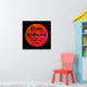 Uma tipografia feliz e assustadora do Dia das Bruxas em uma lua de cheio vermelha laranja em um fundo preto escuro, muito assustadora para a festa do Dia das Bruxas e perfeita para um presente de Dia das Bruxas assustador de outono. Personalize seu nome ou nome da família
