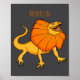 Poster Orange Frilled Neck Lizard Cartoon Illustration Ba
