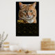 Bold and charming 2026 calendar featuring a close-up of an orange tabby cat with striking green eyes. Set against a dramatic black background, the feline portrait radiates warmth and personality. Below, all twelve months are arranged in a clean yellow grid, blending visual appeal with everyday functionality. Ideal for cat lovers, cozy home decor, and anyone who adores expressive feline companions.