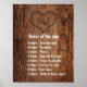 Pôster Ordem do Dia de Casamento Rústico Coração Queimado