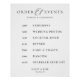 Pôster Order of Events Wedding Sign Minimalist Timeline