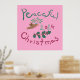 Ilustração original com pequeno galho de carregando de pássaros, com inscrição à mão, dizendo Natal Pacífico 2024 a rosa.