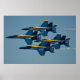 O esquadrão de demonstração de voo de Marinho, os Anjos Azuis, voam na formação de Diamante no show aéreo da Guarda Nacional Open House da Rhode Island. Os Blue Angels estão programados para realizar 68 manifestações em 34 locais nos EUA em 2014 (17 de maio de 2014 - Fotografia por Especialista em Comunicações de Massa - Classe de segundo Kathryn E. Macdonald - Liberada).