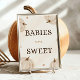Adicione um toque encantador à sua mesa de sobremesa com o nosso sinal **Fall Chá de fraldas 'Babies Are Sweet'**. Este símbolo maravilhosamente desenhado é enfeitado com motivos inspirados no outono, com cores quentes e texto lúgubre que convidam os convidados a se dedicar aos doces preparados para a ocasião. Perfeito para um chá de fraldas com tema de outono, este sinal não só decora o seu espaço, como também celebra a doçura de acolher um novo bebê no mundo, fazer-o como uma alegre adição à sua celebração.