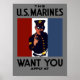 Este poster da Primeira Guerra Mundial apresenta um fuzileiro, vestindo seu blues de vestido, apontando para frente. Ele declara, "Os Fuzileiros Americanos Querem Você". Celebrar Fuzileiros Navais e História WW1 com este produto de poster de guerra vintage restaurado digitalmente da "The War Is Hell Store". Quer mais produtos militares e históricos? Check-out