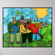 Amantes de Música, Golfistas, Fãs de Arte Moderna, e aqueles que são 'Desafiados de Moda'! Esta pintura digital original de Leslie Sigal Javorek coloca um quarteto de jazz em uma maluca batedeira de golfe no verde do 4º Buraco. Diversão e cor para suas paredes, sorrisos para você e seus amigos!