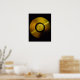 Impressão maravilhosa de 1 dos registros de "ouro", carregando a história da Terra em um espaço profundo a bordo das Voyagers 1 e 2. Os discos de cobre dourados de 12 polegadas contêm saudações em 60 idiomas, amostras de música de diferentes culturas e eras e sons naturais e feitos pelo homem da Terra. Também contêm informações eletrônicas que uma civilização tecnológica avançada poderia converter em diagramas e fotografias. O cobrir de cada jaqueta de alumínio prateado a ouro, projetada para proteger o registro contra o bombardeamento de micrometeoritos, também serve de duplo propósito para fornecer ao localizador uma chave para a gravação. O diagrama explicativo aparece nas superfícies interna e externa do cobrir, uma vez que o diagrama externo será erodido no tempo. Atualmente, ambas as sondas da Voyager estão navegando à deriva no mar negro do espaço interplanetário, tendo deixado nosso sistema solar anos atrás.