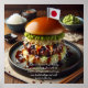 Salva os sabores "oishii" (deliciosos) de Osaka com este sonhador como o japonês Teriyaki Burger. Um pedaço de carne de wagyu suculento, esmaltado com um molho de teriyaki escutador, é tocado com um maionese cremoso, repolho picado, e tudo aninhado dentro de um pão macio e torrado de farinha de arroz. Uma pequena bandeira japonesa adiciona um toque de autenticidade, enquanto os pauzinhos descansam ao lado da placa, completando este sonho culinário japonês.