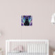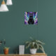 Esta poster com um galho apresenta um gato de mesa sentado entre uma paisagem de fantasia fantástica, e um belo cheio de estrelas do céu noturno mágico. Terminado em um vibrante impressão de tinta a óleo multicolorido.