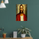 Jesus com os olhos olhando para você hetero com um manto branco e vermelho. Esta é uma foto antiga do início de 1900