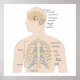 Ossos do peito humano, Ossos do peito com o nome e a descrição de todas as áreas. Visão interna, anatomia humana, sistema esquelético para um poster de medicamento