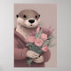 Poster Otter Adorável Com Flores