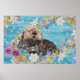 Otters are cute. Spring flowers are pretty. This fanciful artwork is just adorable. What could be more innocent and playful than an otter relaxing in a floating bouquet of pink, blue, yellow, and lavender blossoms. The perfect picture for sweet dreams and happy thoughts.