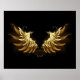 Asas brilhantes e ouros anjos sobre fundo escuro. Asas de ouro.