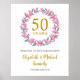 Este Sinal de Boas-vindas para o 50º aniversário de casamento apresenta uma delicada coroa floral verde feita de flores cor-de-rosa e folhas verdes esmeraldas. O sinal pode ser facilmente personalizado com suas informações especiais de aniversário de ouro em texto elegante. Os suprimentos de festa e artigos de papelaria estão disponíveis na coleção "Cartões Florais e materiais de festa do aniversário de casamento cor-de-rosa".