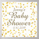 Este sinal de chá, chá de fraldas ou sprinkle, bonito e neutro, apresenta corações de ouro e belíssima caligrafia em ouro falso. Personalize com seu próprio nome e data. Projetado por Piglet © Pura em www.zazzle.com/purepiglet*.