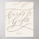 Este pôster de cartões e presentes de casamento em marfim com caligrafia dourada romântica é perfeito para um casamento simples ou chá de noiva. O design clássico moderno apresenta redemoinhos sofisticados e floreios caprichosos com tipografia elegante e falsa folha de ouro em champanhe. A linha de texto na parte inferior do letreiro pode ser personalizada com a data, os nomes da noiva e do noivo, ou uma mensagem curta como "Obrigado". Este letreiro pode ser usado para um casamento ou qualquer evento ou festa.