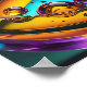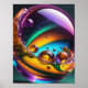 Uma vibrante espiral de cores cria um design esférico abstrato, mesmerizante, com múltiplas bolhas refletoras. O uso de matizes roxas, verdes e amarelas lhe dá uma sensação brilhante, de outro mundo.