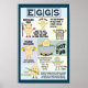 Um olhar humorístico e informativo aos ovos é uma design divertida para cozinheiros na cozinha.
