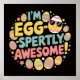 OVOS ESPERTEMENTE INCRÍVEIS!" Poster de páscoa Esta divertida e caprichosa poster de arte de parede é uma peça perfeita de decoração sazonal para Páscoa e primavera. O design é uma colagem circular brilhante contra um fundo preto elegante, centrado em volta do trocadilho lúdico: "EU SOU ESPERTEMENTE ESOME!" O texto é renderizado em fontes em negrito, arredondadas, estilo cartoon, usando uma paleta de cores vivas de amarelo pastel, azul de ovo de robin e rosa alegre. O círculo está cheio de elementos decorativos, incluindo estrelas pequenas e numerosos ovos de Páscoa padronizados. Um ovo grande e sorridente vestindo óculos de sol legal fica ao lado do texto, adicionando uma dose de personalidade e humor. Esta poster é ideal para qualquer pessoa que queira adicionar um toque bonito, colorido e leve a uma cozinha, sala de aula, sala de aula ou festiva.