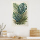 Este design colorido é um estilo aquoso de um monte de folhas tropicais. Palm e Monstera. As cores são verdes. A proporção largura/altura é 2:3. Ele foi projetado para ser impresso como 24"×36", 16"x24" ou 20"×30"