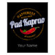 Pad Kaprao com pimenta para aqueles com um dente doce e gourmets, o retro-comida da rua Pad Krapow souvenir para o chef. Pad Kra Pao ou Phat Kaphrao como uma lembrança para a Tailândia e as férias. Pad Kaprao para cozinheiros amadores e cozinha tailandesa. Deliciosa especialidade tailandesa de Pad Kaprao para chef, vintage design souvenir. Pad Kaprao com chili retro comida de rua Pad Krapow para chefs amadores e amantes Pad Kra Pao. Phat Kaphrao para cozinha e lazer. Você pode personalizar e personalizar facilmente o design digitando o nome desejado.
