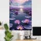 Esta poster cativante apresenta uma cena serena e pitoresca que combina facilmente a beleza tranquila da natureza com uma paleta colorida mesmerizante. No coração da composição está um belamente detalhado oleoso, flutuando graciosamente nas águas calmas. A almofada de lírios, reproduzida com precisão refinada, torna-se um ponto focal que desenhar o espectador a um abraço pacífico com a natureza. Ao redor desse elemento central, o pano de fundo se desdobra em uma paisagem de montanha inspiradora de admiração, representada em tons espantosos de azul e roxo.
