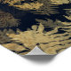 Poster Padrão Azul de Folhagem Dourada tropical moderno