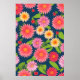 Poster padrão de flores cor-de-rosa, estilo retrô
