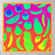 Elevem seu estilo com uma explosão de energia. Descubra um padrão vibrante e colorido de frutas neonatais para um ambiente vivo e moderno (este design foi criado usando a plataforma AI Dalle-E2). Compre agora!